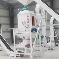 Feed production line mainly includes raw material receiving and cleaning system, crushing system, batching and mixing system, pelletizing system, finished product packaging system, and palletizing.