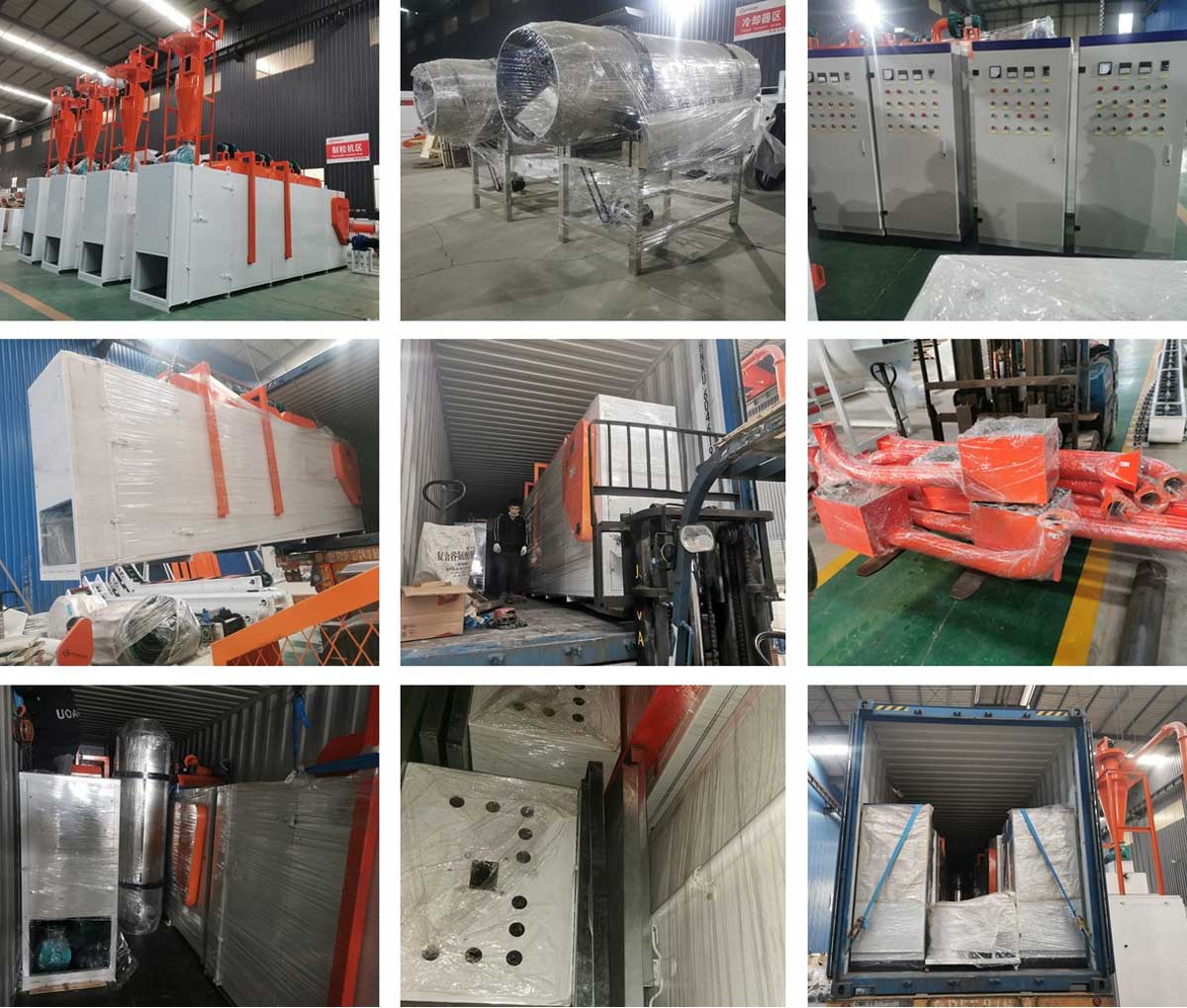 Four feed dryer machine pneumatic conveying system and oil spary machine packing to Russia