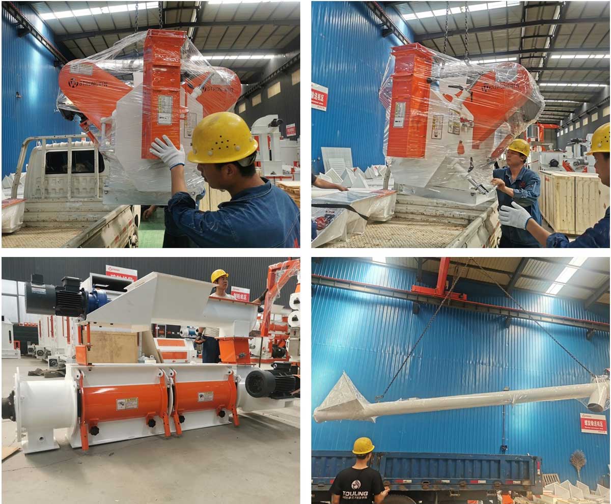 SZLH250 ring die feed making machine and screw conveyor packing to Hubei